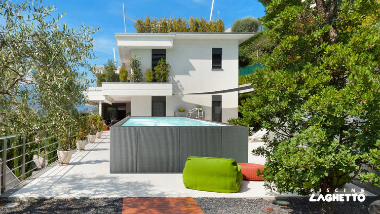 El Diva LTI de Piscine Laghetto es la elección perfecta para quienes buscan una piscina elegante, duradera y técnicamente bien diseñada. Este modelo combina el moderno diseño italiano con tecnología innovadora y ofrece el máximo confort para disfrutar de momentos de relajación en el propio jardín.